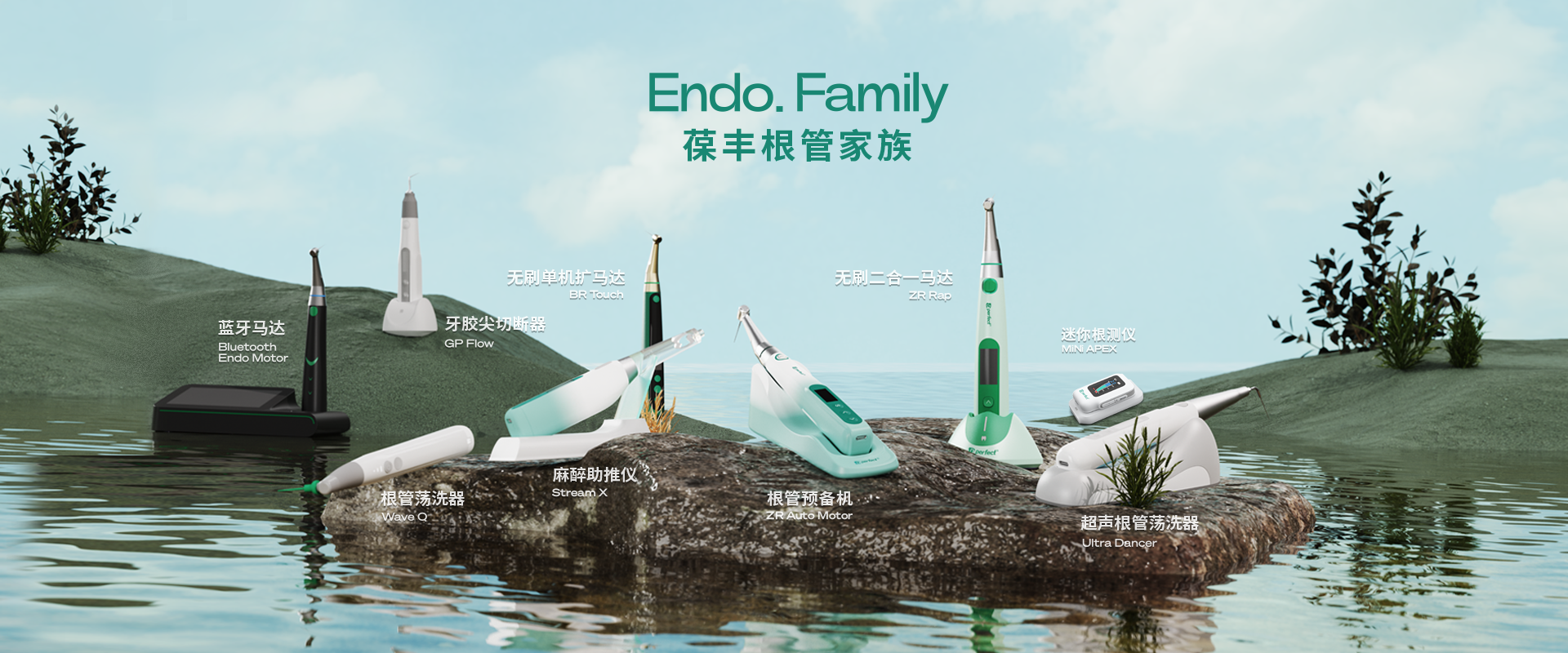電子產(chǎn)品:根管預(yù)備機(jī);根管測量儀;根管蕩洗器;熱熔牙膠充填系統(tǒng);無線便攜式麻醉儀;生物陶瓷治療輔助工具。